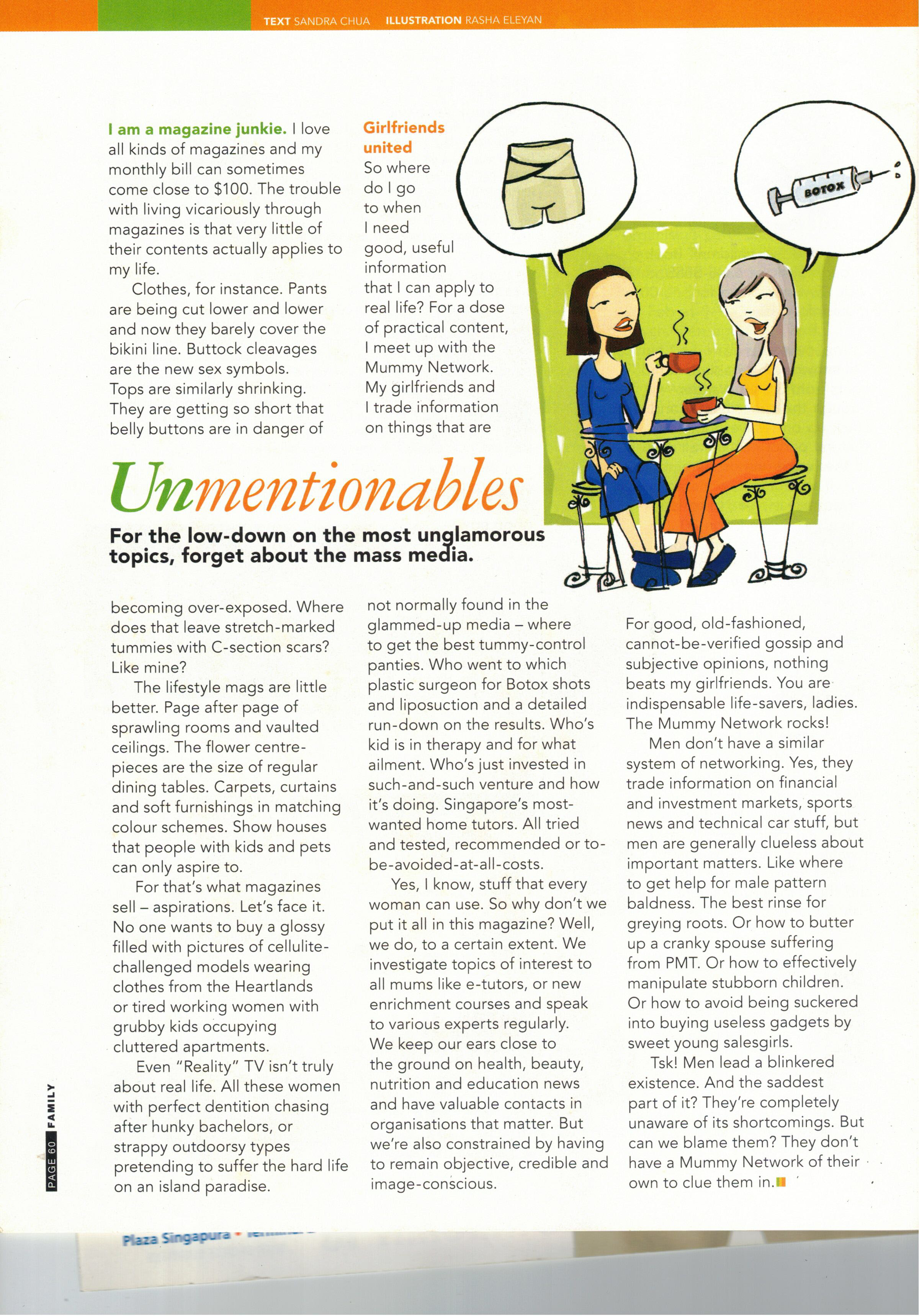 Working at Family Magazine (MediaCorp Publishing), the best fun I had was composing 500 word articles for a column called Family Daze. (The most dreary thing to do at the time was to meet with advertisers and kow-tow to their demands.) Family Daze managed to garner a collection of appreciative readers who looked forward to the last page of the magazine every month.